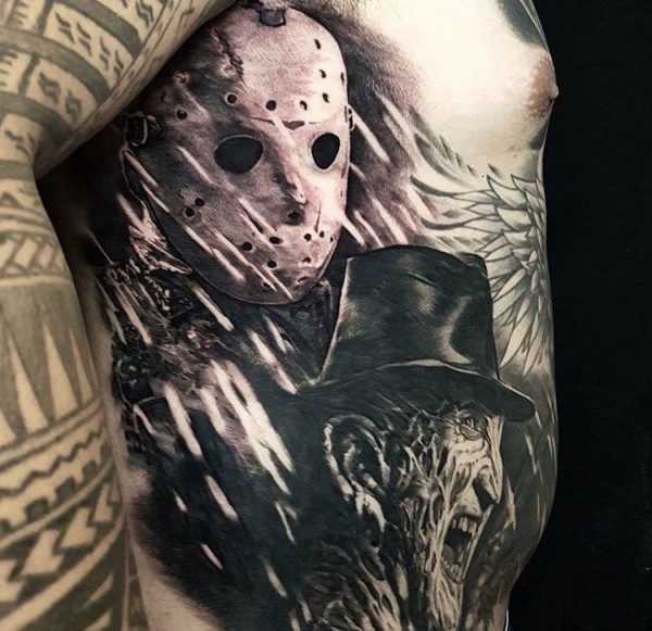黑灰色骷髅头纹身腰部男性超霸气纹身图案