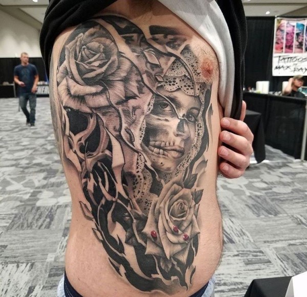 侧腰女骷髅刺青图案图片_骷髅纹身图案大全_纹身图吧