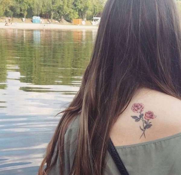 女性彩色植物颜料纹身玫瑰花纹身图案