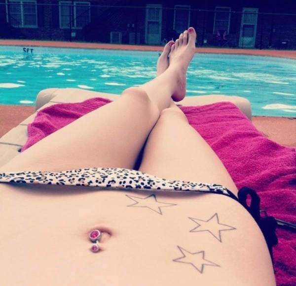 女孩子们性感腹部上漂亮的纹身图案