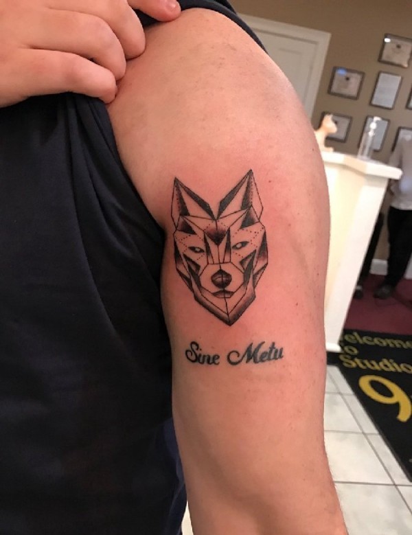 手大臂上帅气的几何风格狼头纹身图片