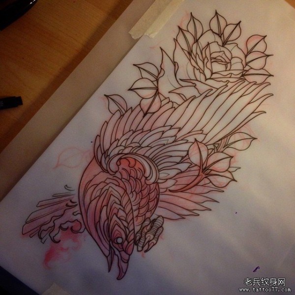 欧美school乌鸦玫瑰纹身图案手稿