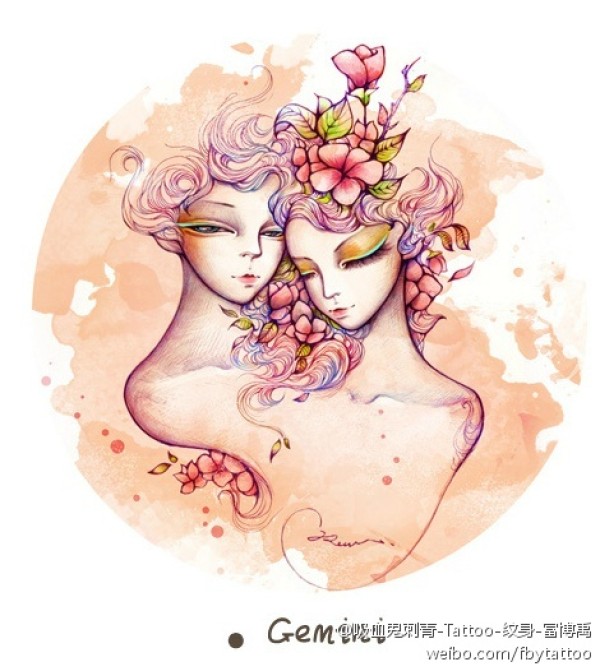 双子座纹身手稿_29张十二星座之双子座纹身图案手稿