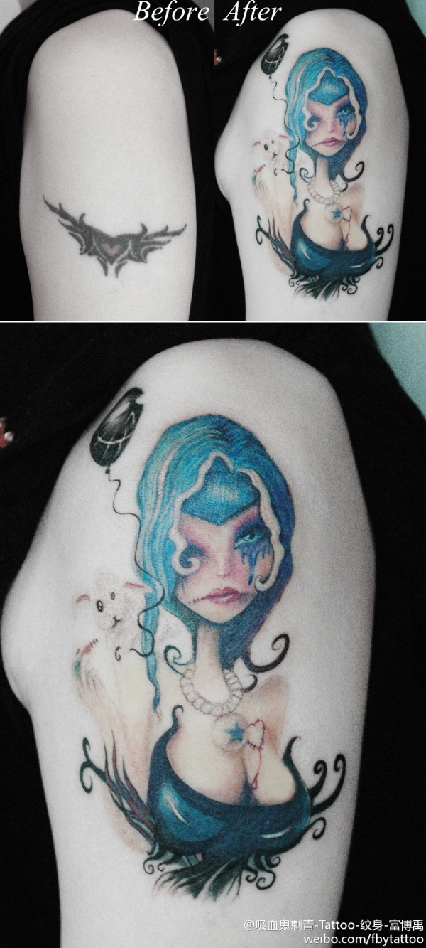 复古卡通红唇美女手臂纹身_卡通纹身图案大全_纹身图吧