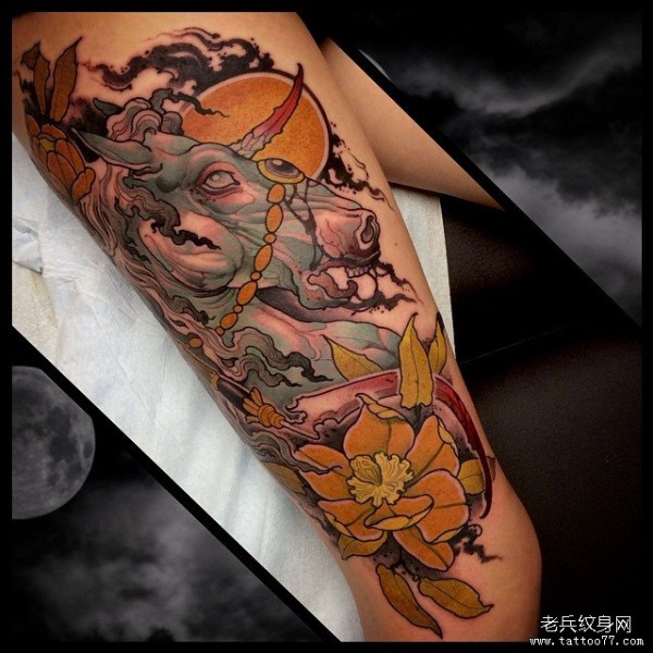 传统花腿纹身--18张传统风格的大花腿纹身图案作品