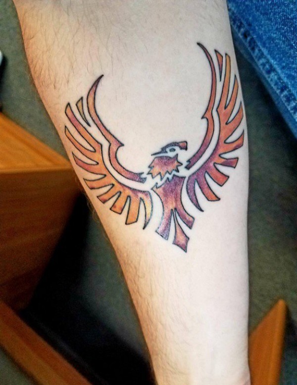 手前臂上帅气的黄色鹰部落图腾纹身图片