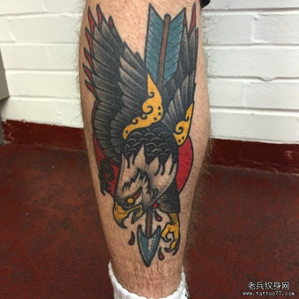小腿欧美old school老鹰纹身图案