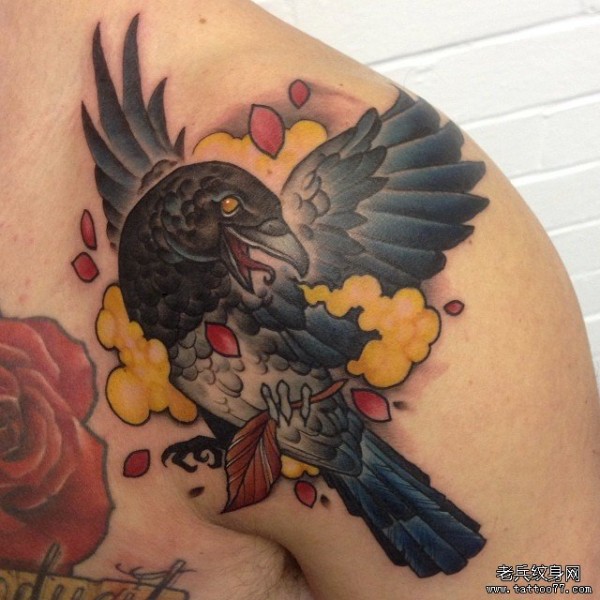 欧美school肩部乌鸦彩绘纹身图案
