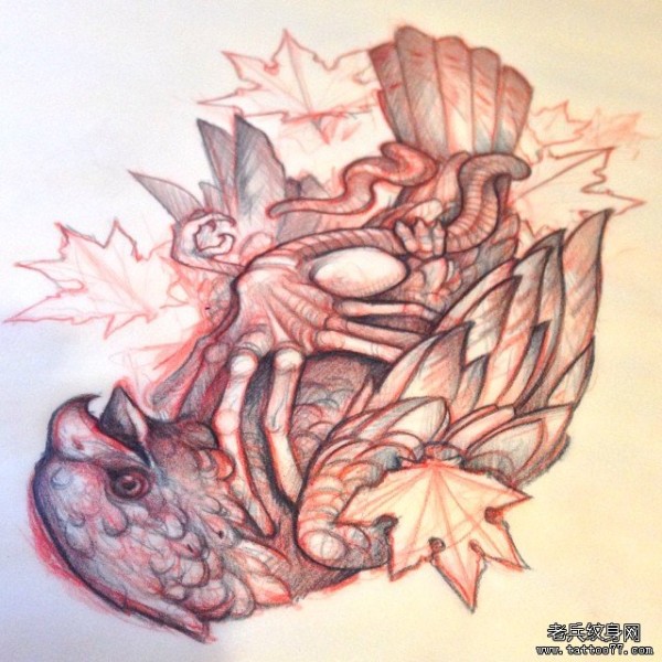 欧美school老鹰枫叶纹身图案手稿