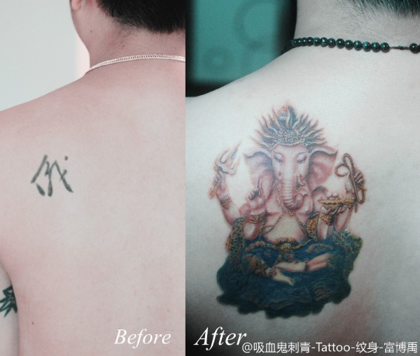 手臂黑灰象神_一组12张手臂上的黑灰象神纹身图案作品欣赏