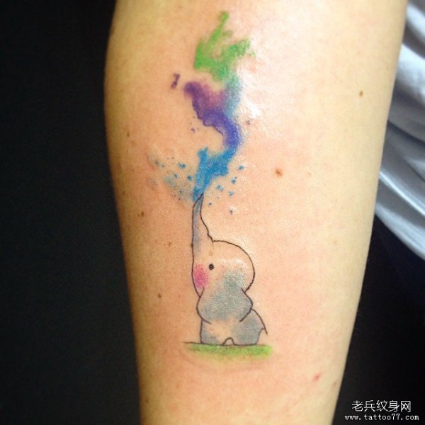 小腿上一款大象纹身图案_腿部纹身图案大全_纹身图吧