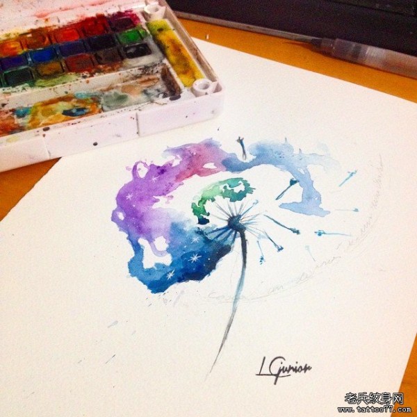 欧美泼墨小清新蒲公英纹身图案手稿