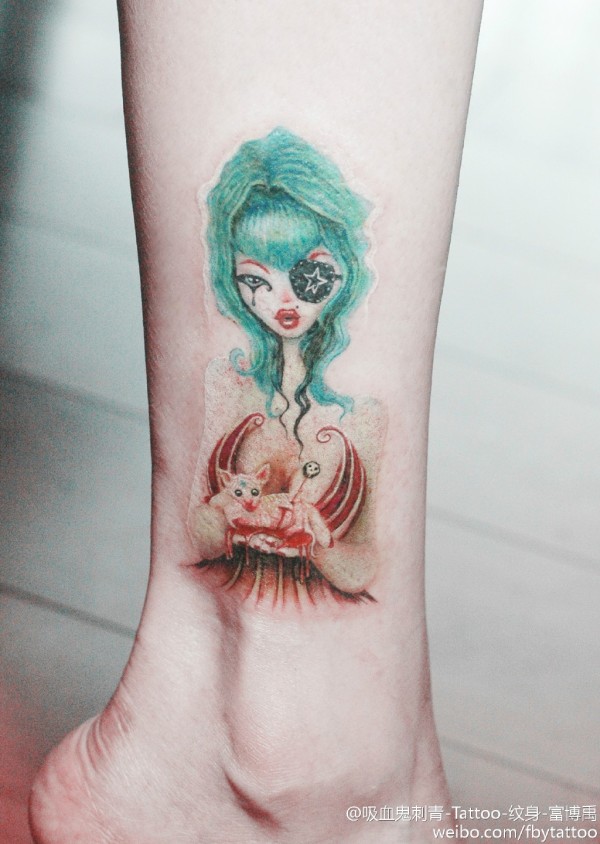 复古卡通红唇美女手臂纹身_卡通纹身图案大全_纹身图吧