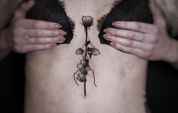 黑色抽象线条纹身点刺技巧手握黑白玫瑰花纹身图片