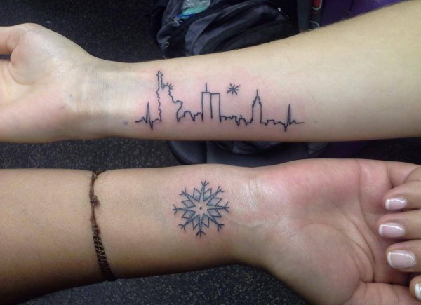 描绘城市标志建筑天际线的纹身图案