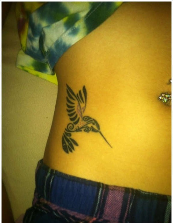 一组漂亮女孩身上的可爱的小蜂鸟纹身图案