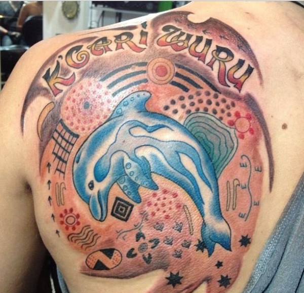 多款可爱的蓝色的现实主义风格纹身海豚纹身动物图案