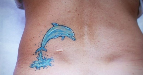 多款可爱的蓝色的现实主义风格纹身海豚纹身动物图案