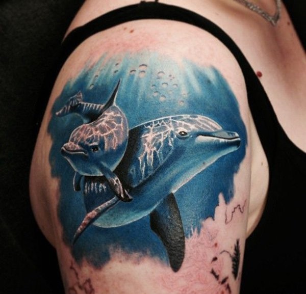 多款可爱的蓝色的现实主义风格纹身海豚纹身动物图案