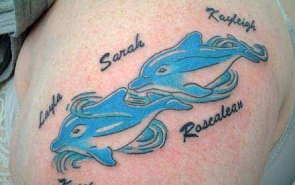 多款可爱的蓝色的现实主义风格纹身海豚纹身动物图案