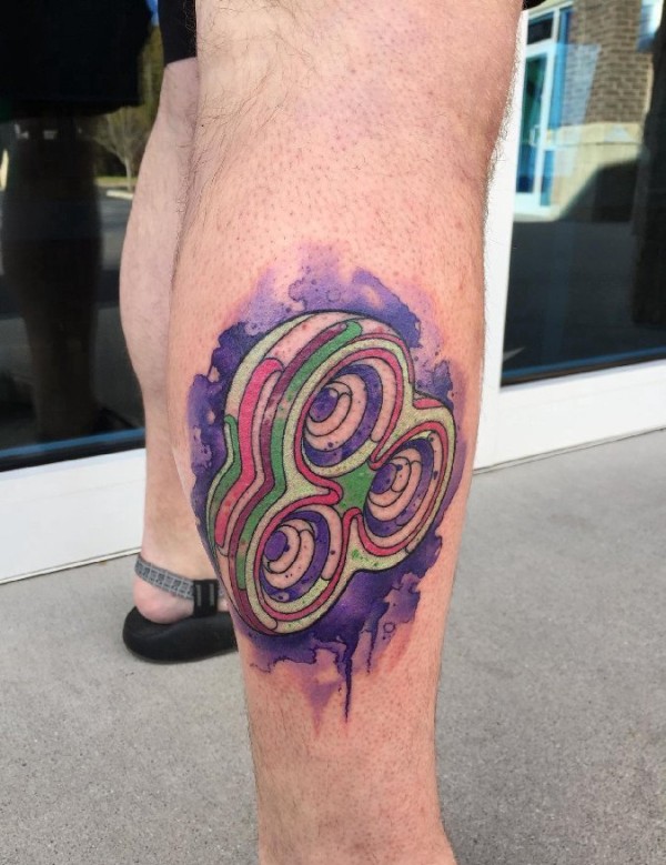 小腿上的水彩的bonnaroo音乐节Logo纹身