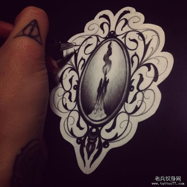 欧美school黑灰镜子蜡烛纹身图案手稿