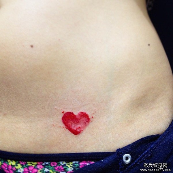 腹部小清新红色心形纹身图案