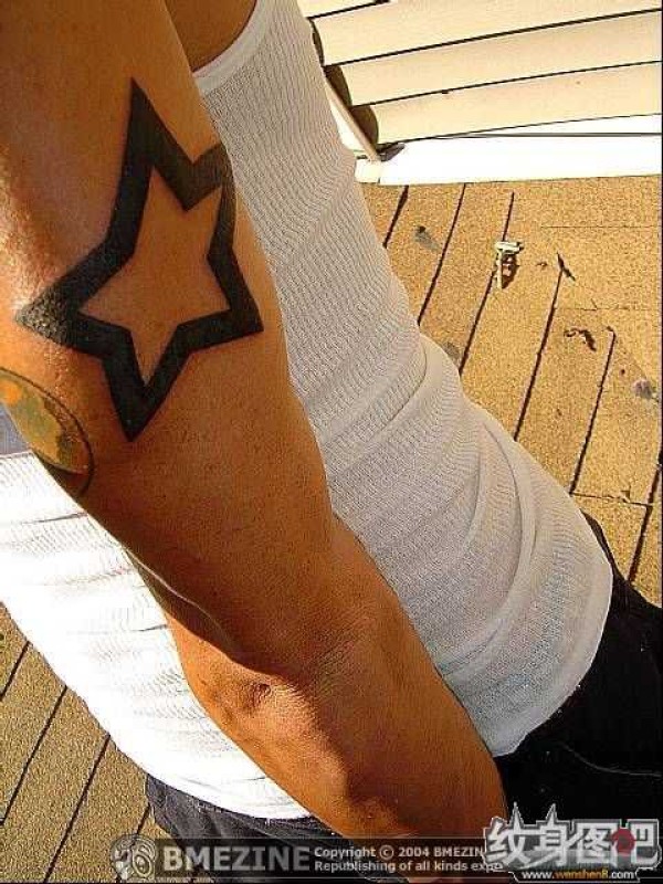 黑体镂空的五角星纹身