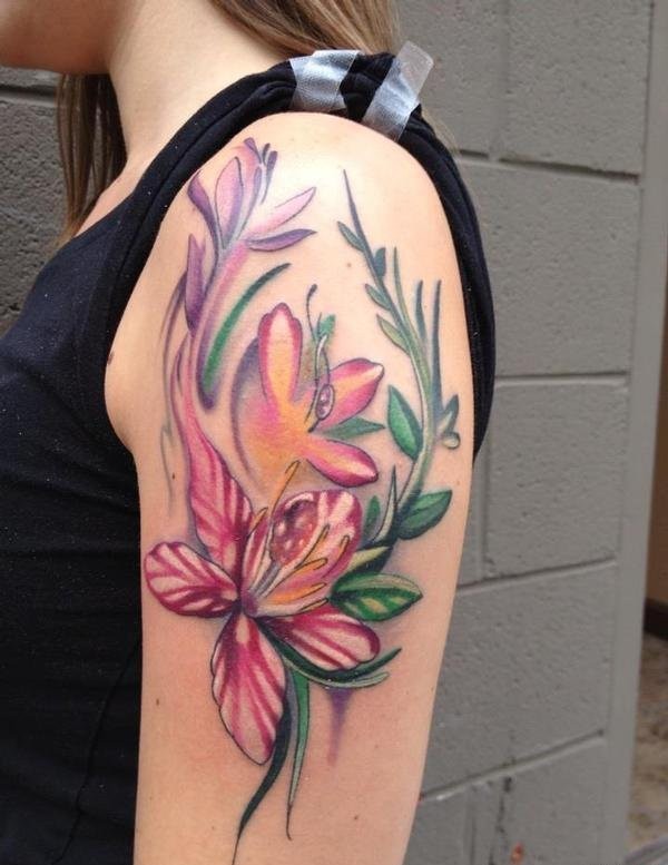 后肩唯美花藤英文图案图片_植物纹身图案大全_纹身图吧