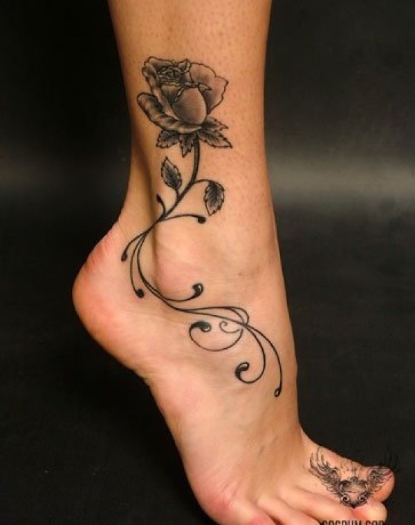 清新花朵腿部纹身图案图片_植物纹身图案大全_纹身图吧