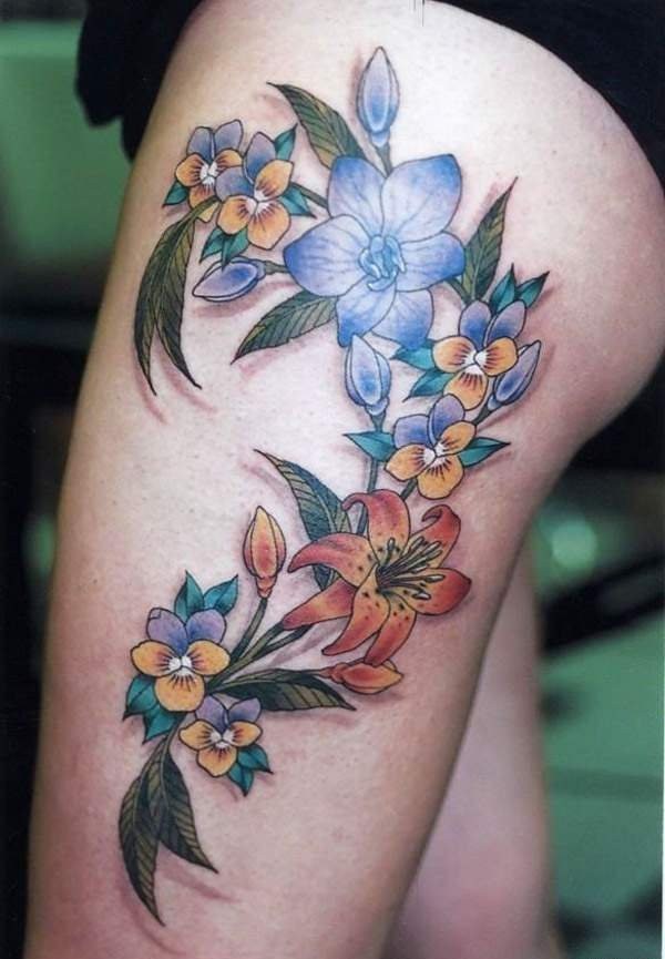 清新花朵腿部纹身图案图片_植物纹身图案大全_纹身图吧