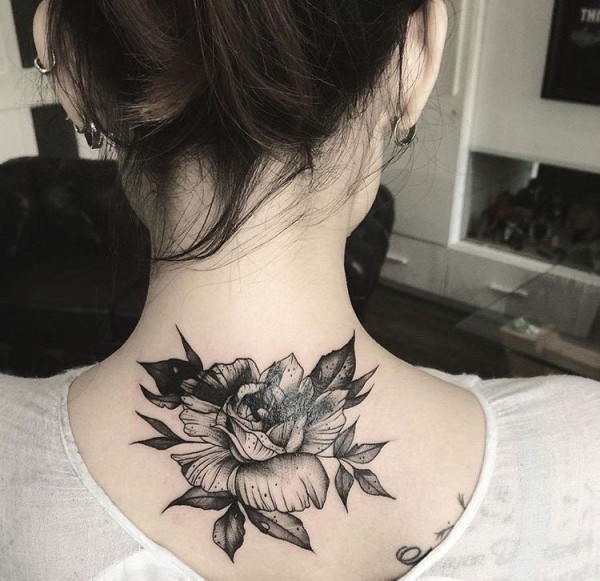 黑色简单个性线条纹身点刺纹身玫瑰花图案大全