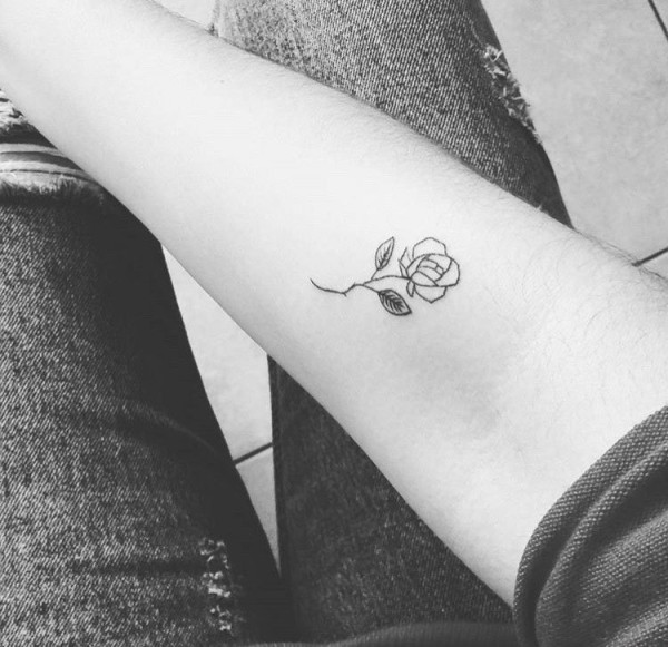 黑色简单个性线条纹身点刺纹身玫瑰花图案大全