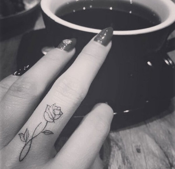 黑色简单个性线条纹身点刺纹身玫瑰花图案大全