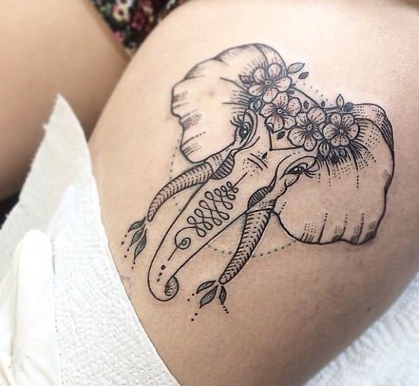 很霸气很精美的正面大象纹身图案