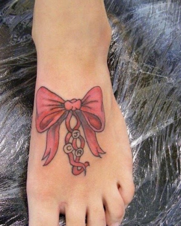 女孩足部或腿部上女神纹身小清新纹身蝴蝶结图案