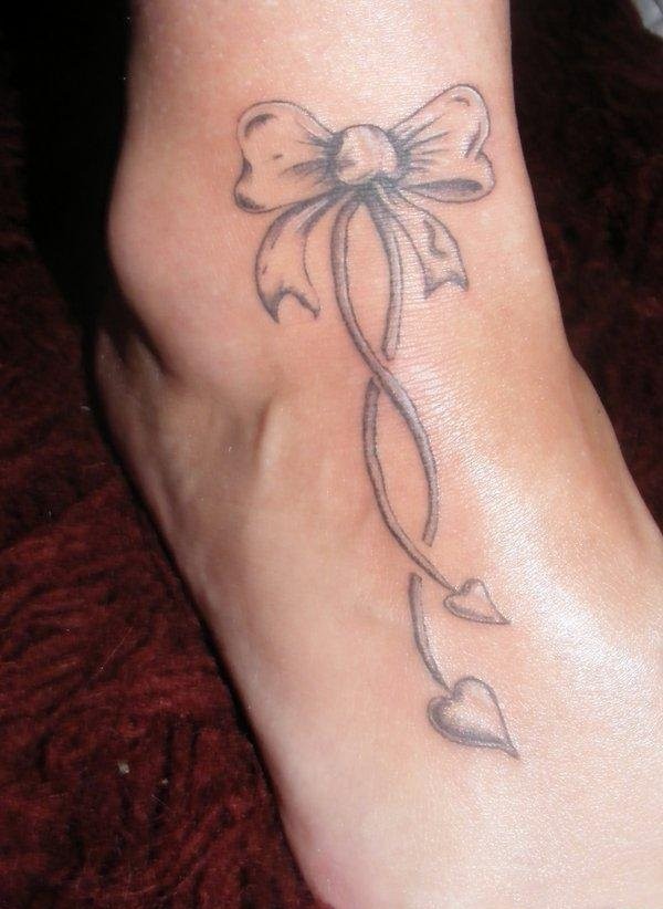 女孩足部或腿部上女神纹身小清新纹身蝴蝶结图案