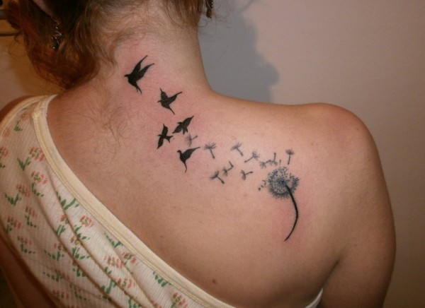 女性身上多种风格的蒲公英纹身动物图案纹身