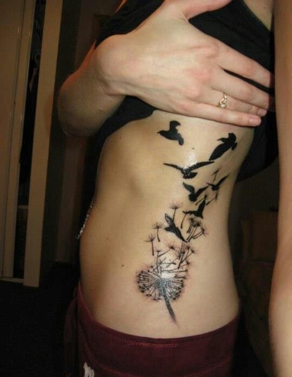 女性身上多种风格的蒲公英纹身动物图案纹身