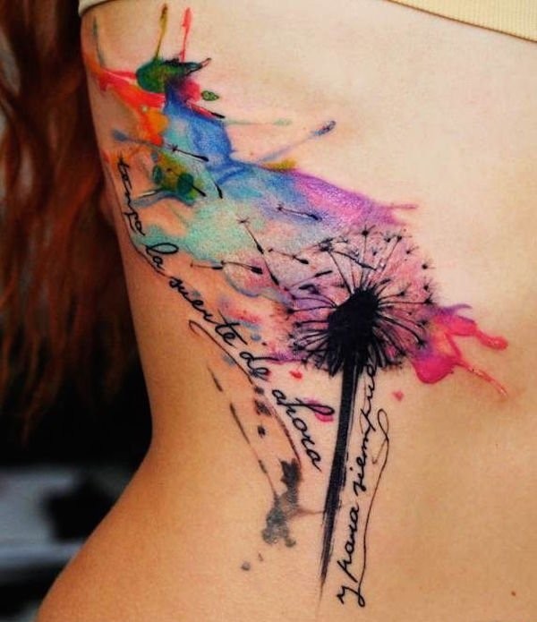 女性身上多种风格的蒲公英纹身动物图案纹身