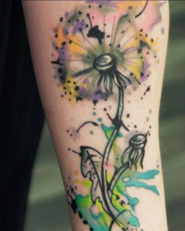 女性身上多种风格的蒲公英纹身动物图案纹身