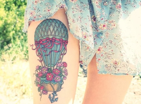 女性性感部位上漂亮的热气球纹身图案