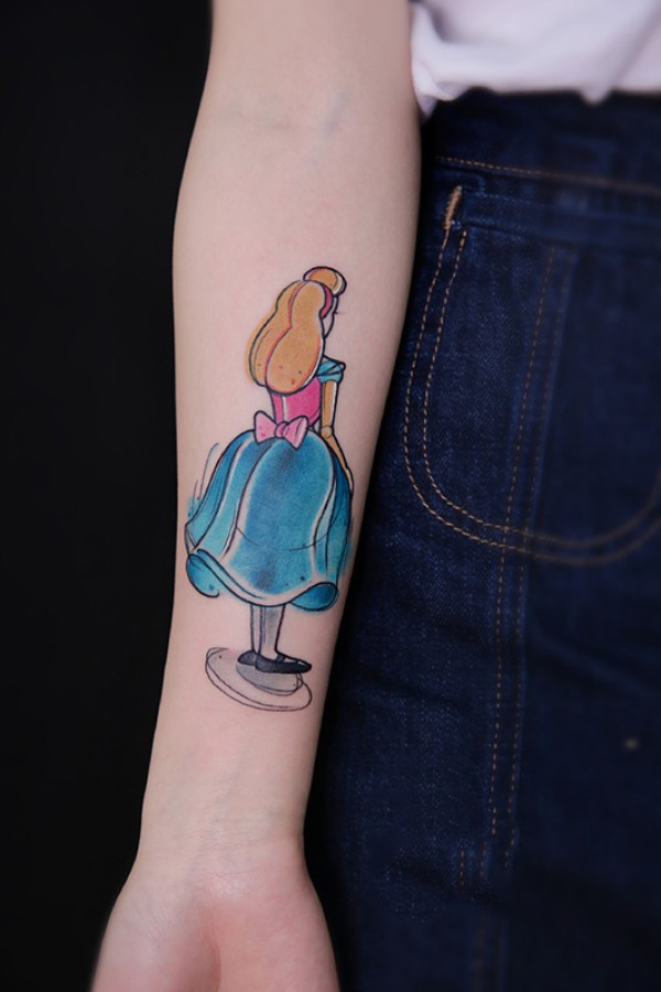 复古卡通红唇美女手臂纹身_卡通纹身图案大全_纹身图吧