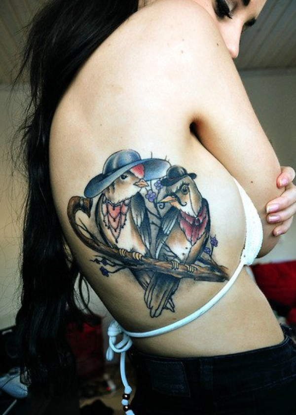 分享一款腰部时尚性感的蝶恋花纹身图案_腰部纹身图案大全_纹身图吧