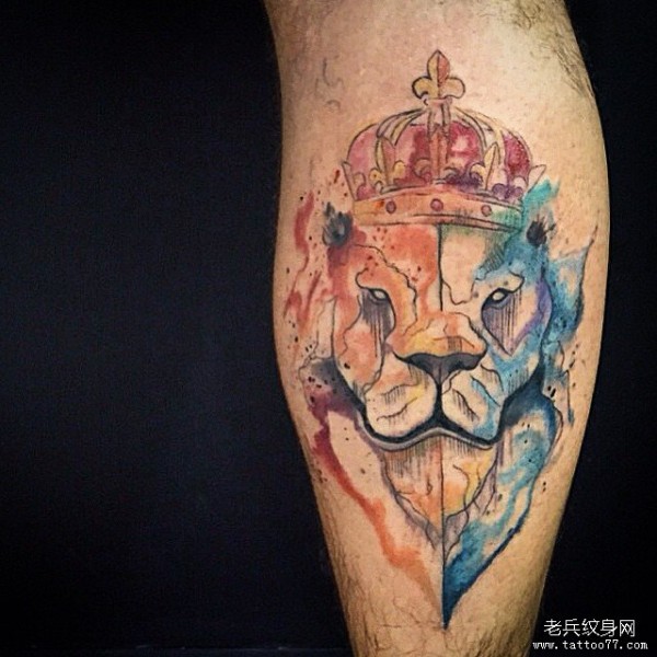 小腿欧美狮子国王泼墨纹身图案
