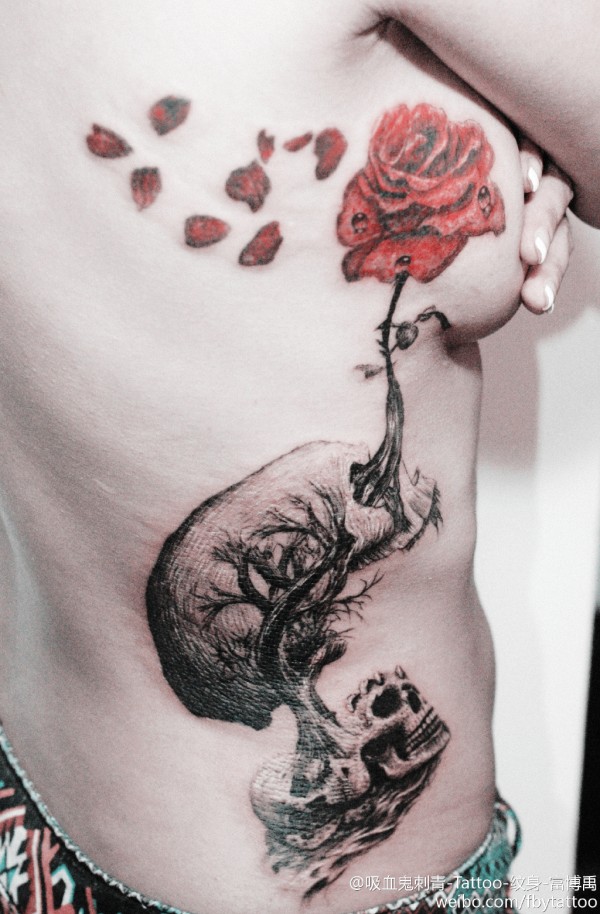 分享一款腰部时尚性感的蝶恋花纹身图案_腰部纹身图案大全_纹身图吧