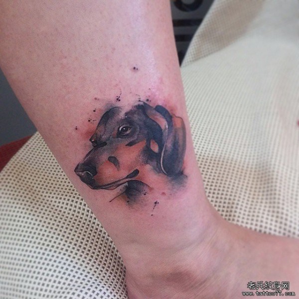 脚踝欧美泼墨狗头像纹身图案