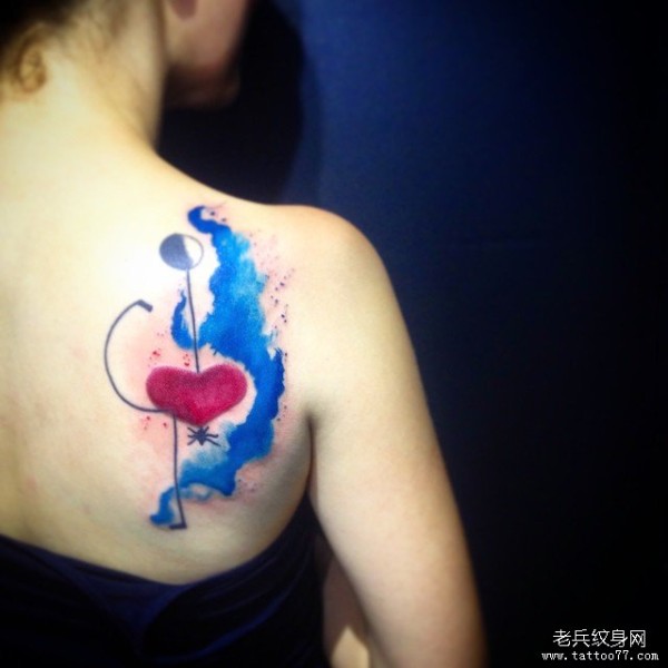 背部欧美泼墨心形小清新纹身图案