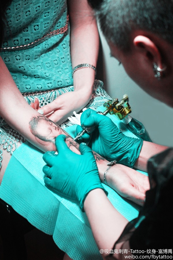 父母把孩子的照片和生日纹在了身上~