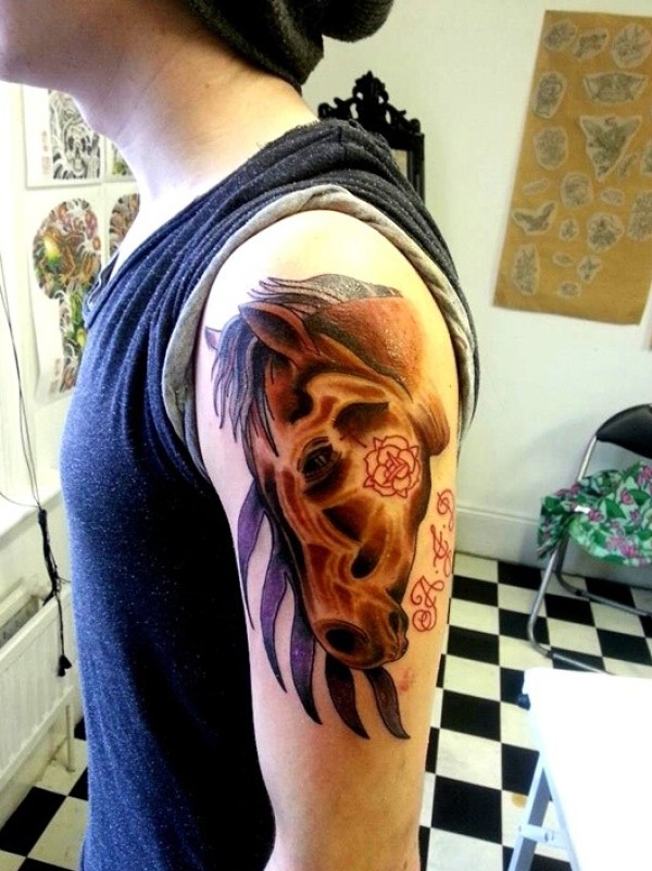 男生手臂帅气时尚的马纹身